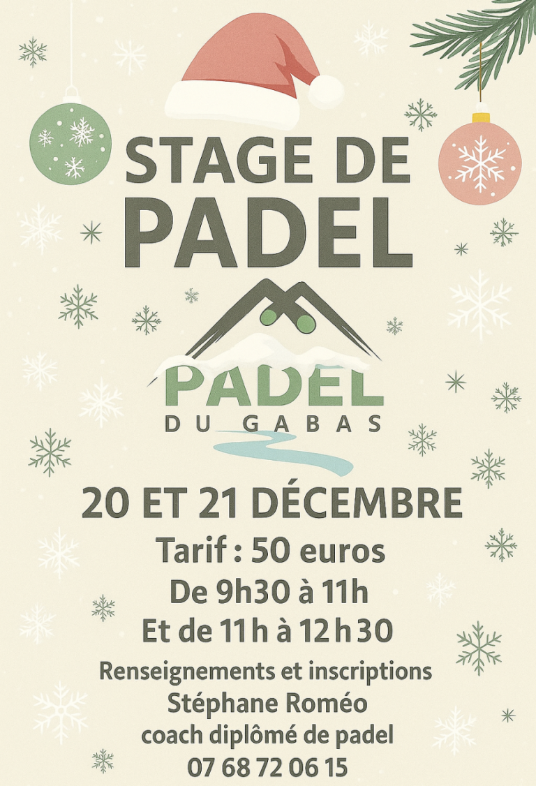 Inscrivez vous au stage de Padel les samedi 20 et dimanche 21 décembre 2025