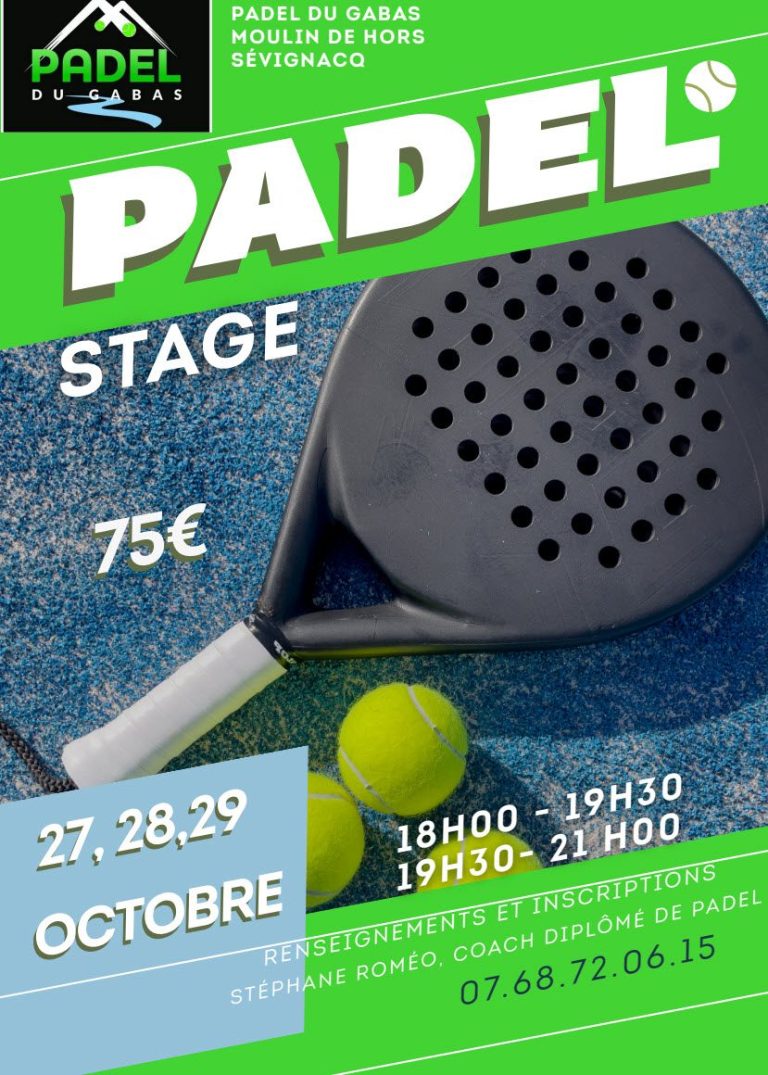 Inscrivez vous au stage de Padel les 27-28-29 octobre 2025